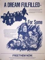 Part of a poster series with tagline "Free them now" containing photos and part of an open 1969 letter from Jews in the Soviet Republic of Georgia.