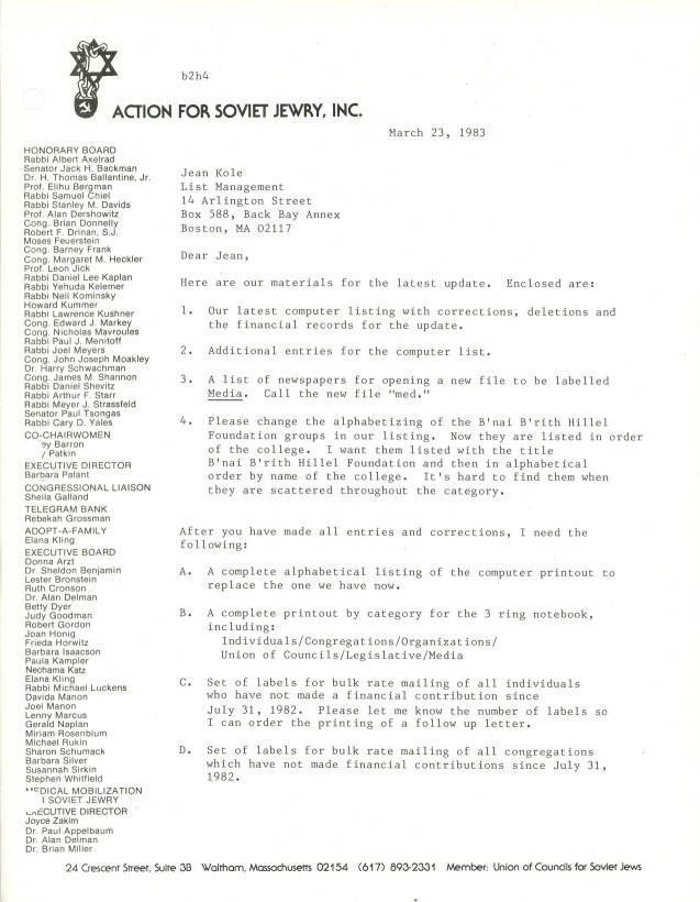 Correspondence - Soviet Jewry to Jean Kole