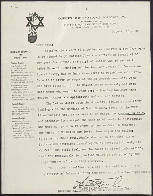 Initiative of the CCSAS to get people to send Rosh Hashanah cards to Soviet Jews.