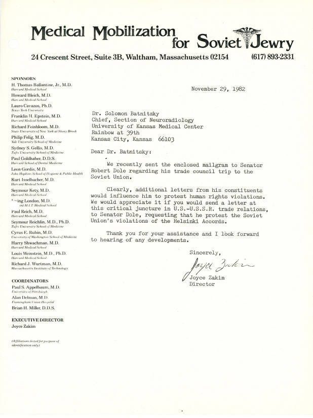 Union of Councils for Soviet Jews, Medical Mobilization for Soviet Jewry, Dole, Robert J., 1923-2021