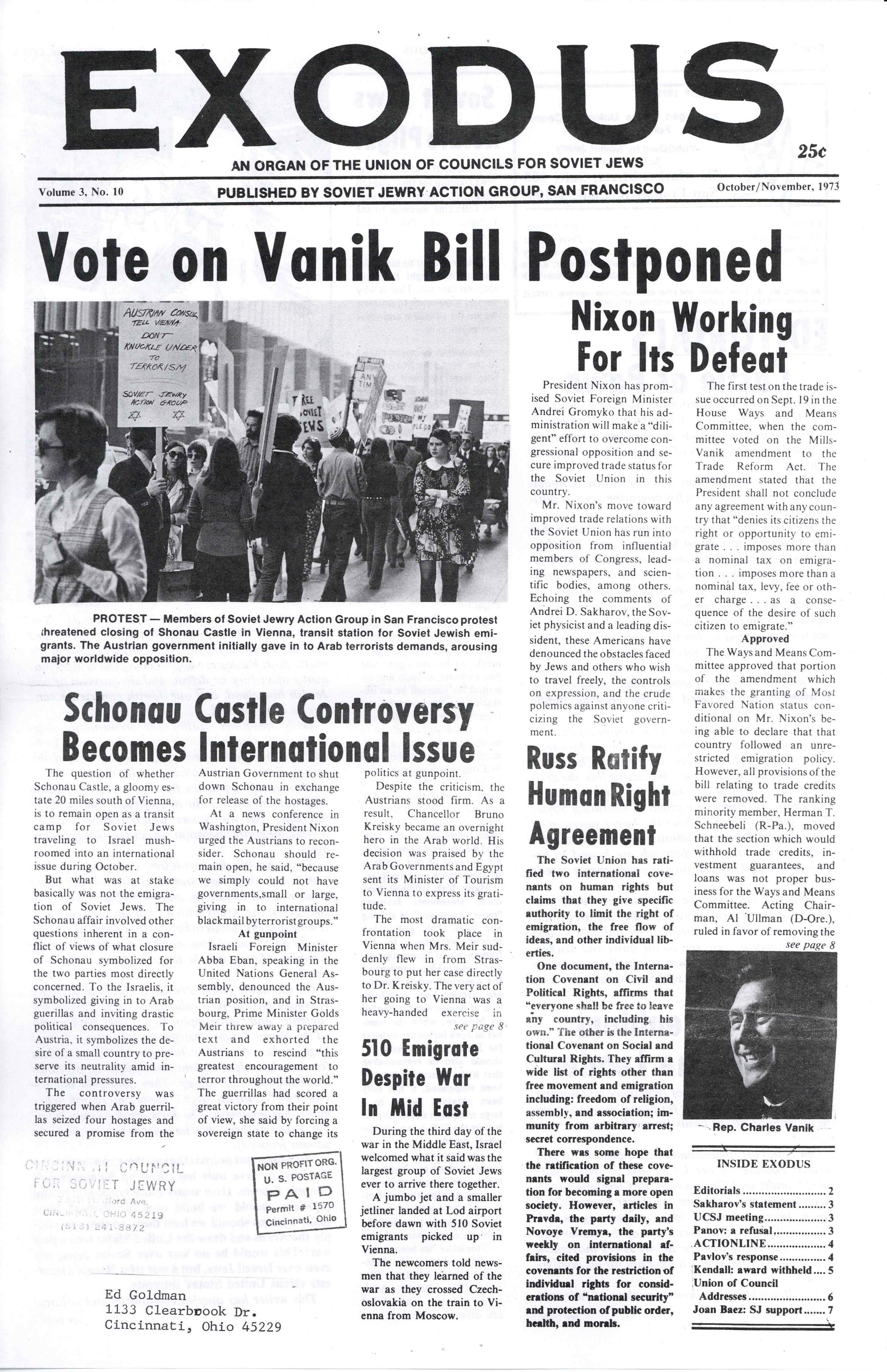 Union of Councils for Soviet Jews, United States. Trade Act of 1974. Title 4. Section 402, Rosenblum, Louis, Baez, Joan, Sakharov, Andreĭ, 1921-1989, Panov, Valery, 1938-