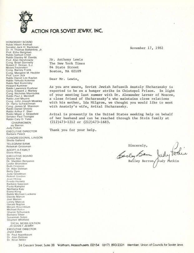 Correspondence - Bailey Barron and Judy Patkin to Anthony Lewis