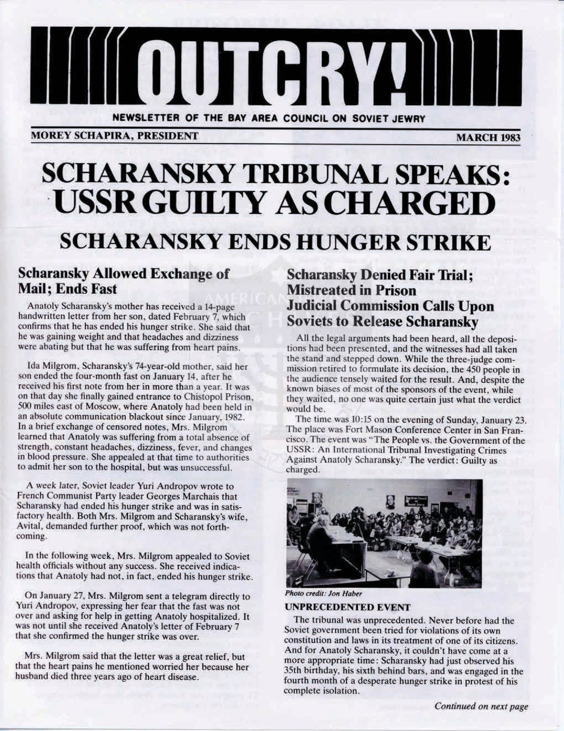 Union of Councils for Soviet Jews, Bay Area Council on Soviet Jewry, Schapira, Morey, Shcharansky, Anatoly, Sakharov, Andreĭ, 1921-1989, Waksberg, David, Nudel, Ida, Shcharansky, Avital