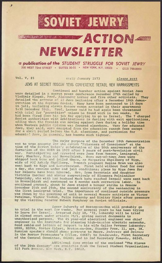 Cleveland Council on Soviet Anti-Semitism, Union of Councils for Soviet Jews, Rosenblum, Louis, New York Student Struggle for Soviet Jewry, Palatnik, Raiza, Zalmanson, Silva, Alexandrovich, Ruth