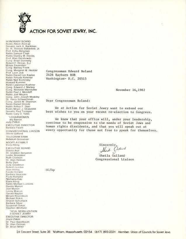 Union of Councils for Soviet Jews, Boland, Edward P., 1911-2001