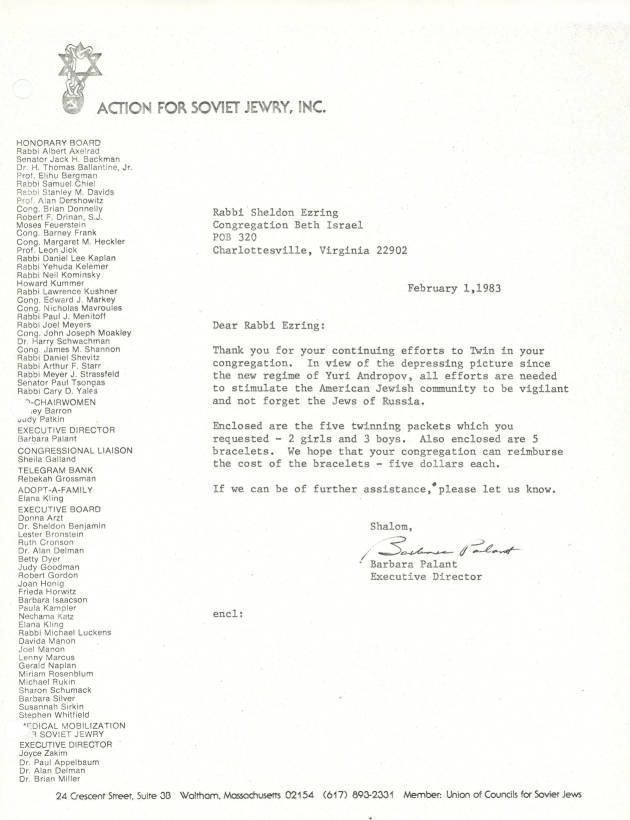 Union of Councils for Soviet Jews, Ezring, Sheldon, 1947-, Congregation Beth Israel (Charlottesville, Va.)