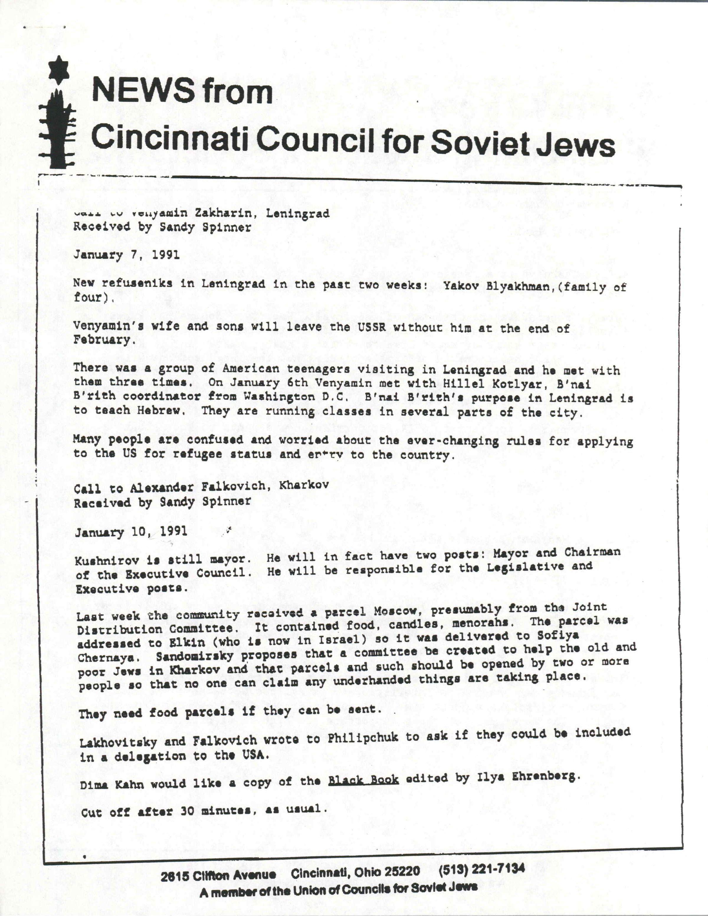 NEWS from Cincinnati Council for Soviet JewsEntry/Object ID