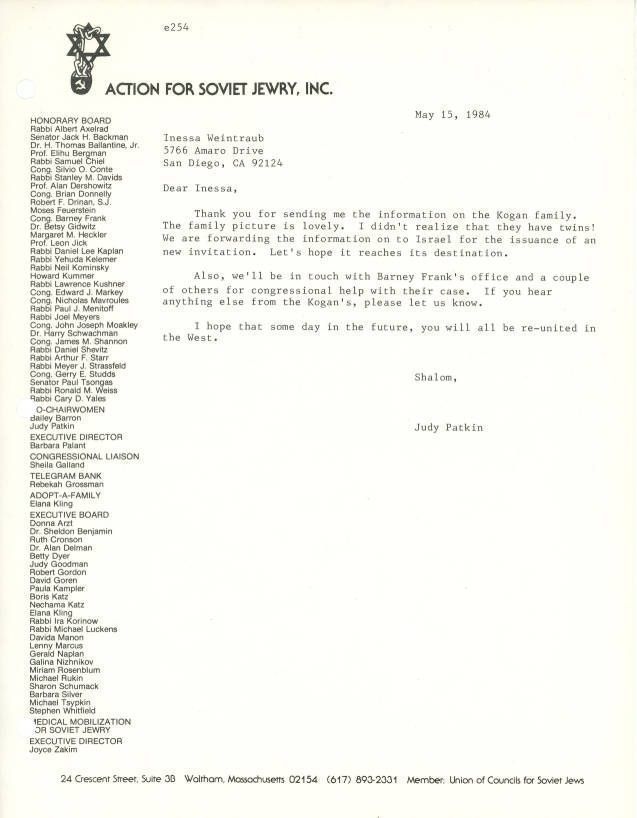 Correspondence-Judy Patkin to Inessa WeintraubEntry/Object ID