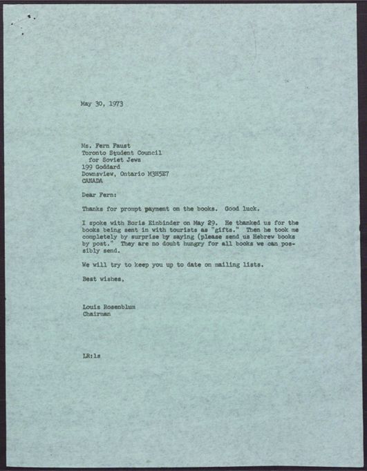 Cleveland Council on Soviet Anti-Semitism, Union of Councils for Soviet Jews, Rosenblum, Louis, Toronto Student Council for Soviet Jews, Gruda, Michael