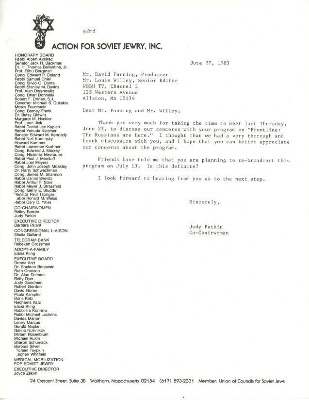 Jews -- Massachusetts -- Boston, Jews, Soviet, Emigration & immigration, Refuseniks, Television shows