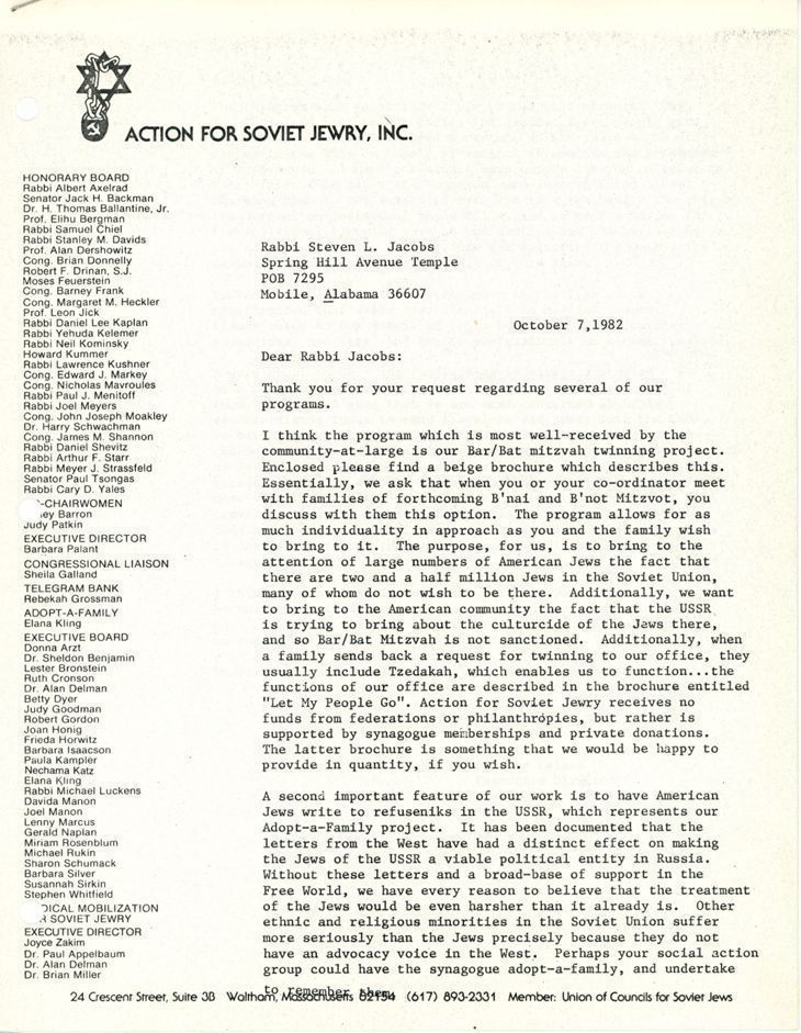 Jews -- Massachusetts -- Boston, Refuseniks, Emigration & immigration, Jews, Soviet, Rabbis, Jews -- Alabama -- Mobile