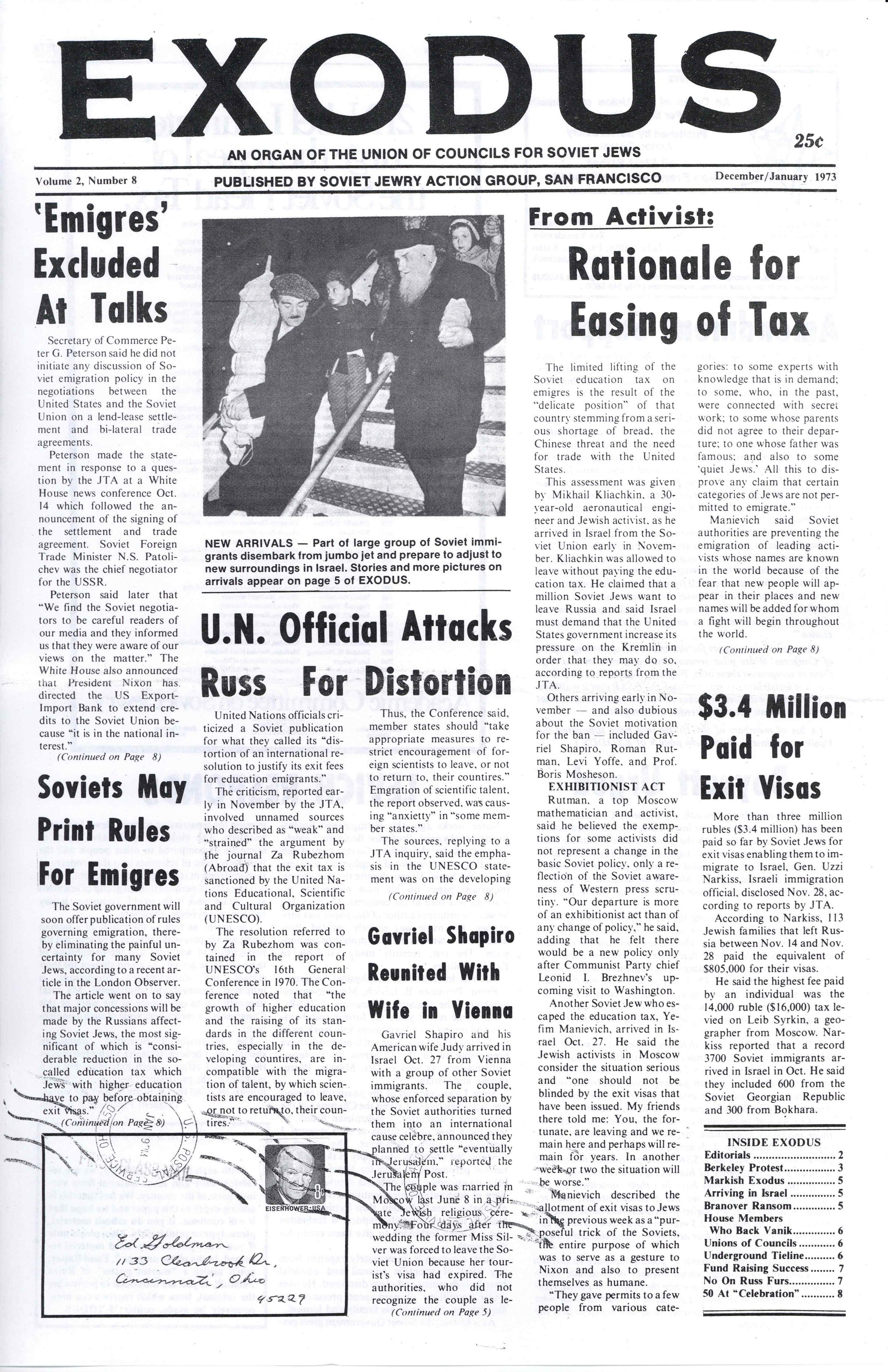 Exodus : an organ of the Union of Councils for Soviet Jews, vol. 2, no. 8