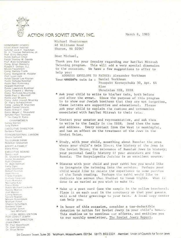 Correspondence - Soviet Jewry to Michael Shusterman