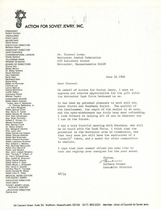 Union of Councils for Soviet Jews, Worcester Jewish Federation