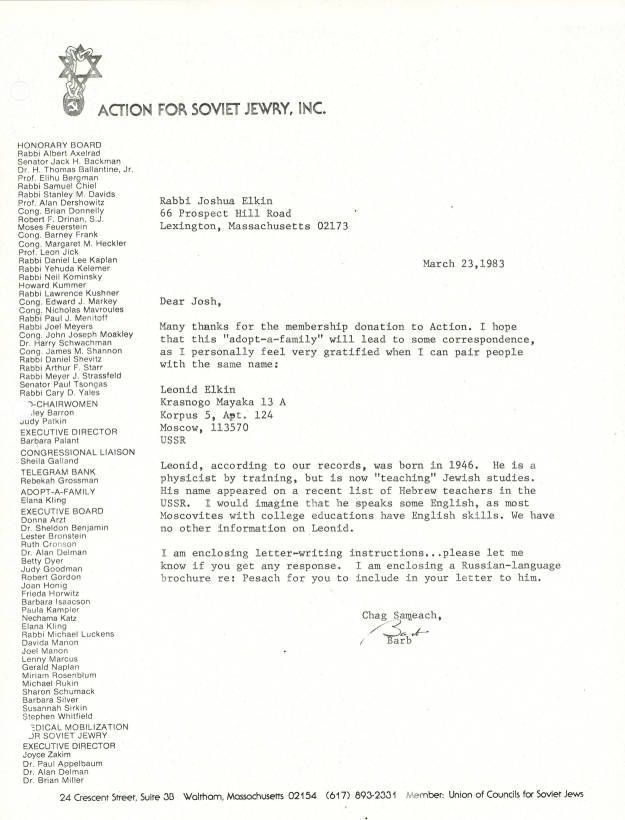 Jews -- Massachusetts -- Boston, Jews, Soviet, Emigration & immigration, Refuseniks, Donations, Rabbis
