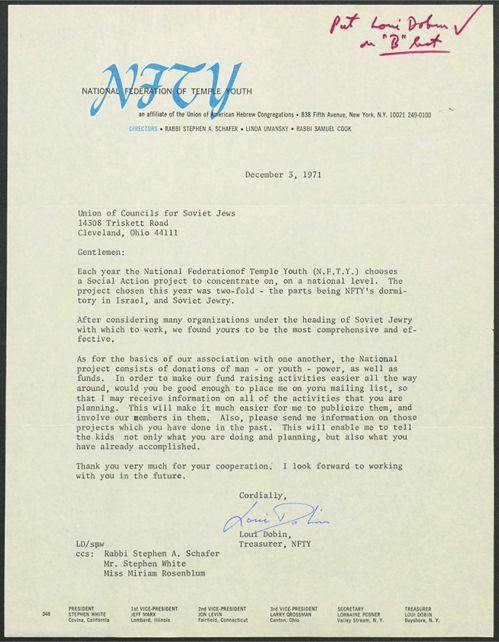 Cleveland Council on Soviet Anti-Semitism, Union of Councils for Soviet Jews, Rosenblum, Louis, Decter, Moshe, Coalition for Soviet Jewry. Commission of Inquiry on the Rights of Soviet Jews, Jewish Theological Seminary of America. Committee for Soviet Jewry, American Zionist Youth Foundation, Ruffer, Paul, Freierman, Arthur, Derman, Jonathon
