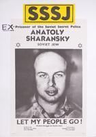 Originally part of a poster series featuring photos of imprisoned Soviet Jews overlaid with graphic of prison bars, and message "Let my people go!" Updated following Sharansky's release.Collection