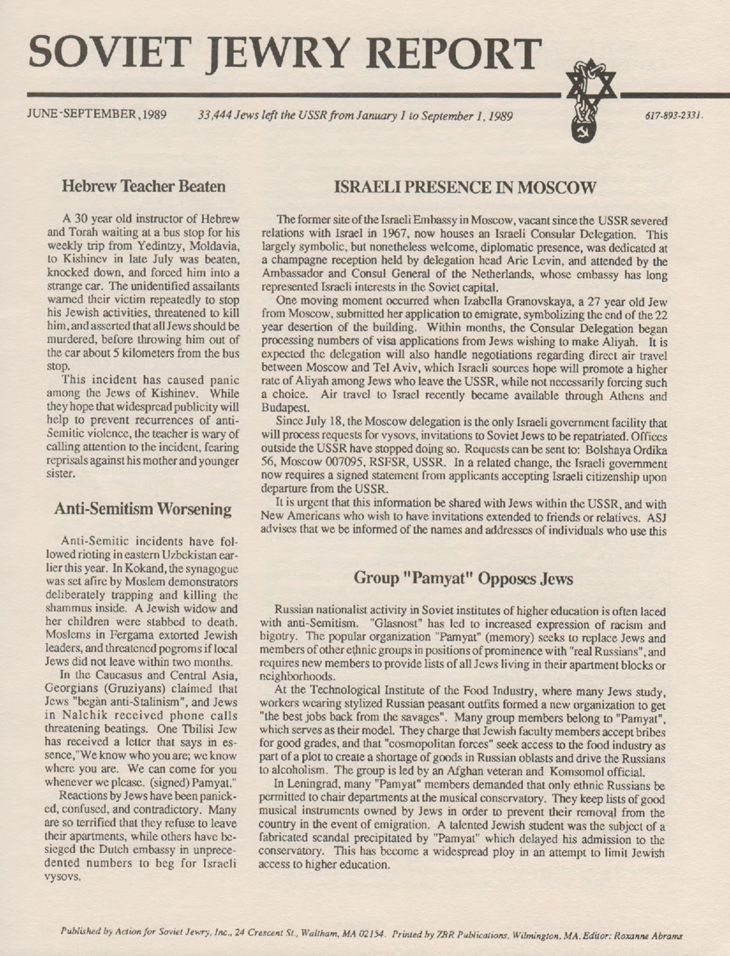 Newsletter published by Action for Soviet Jewry