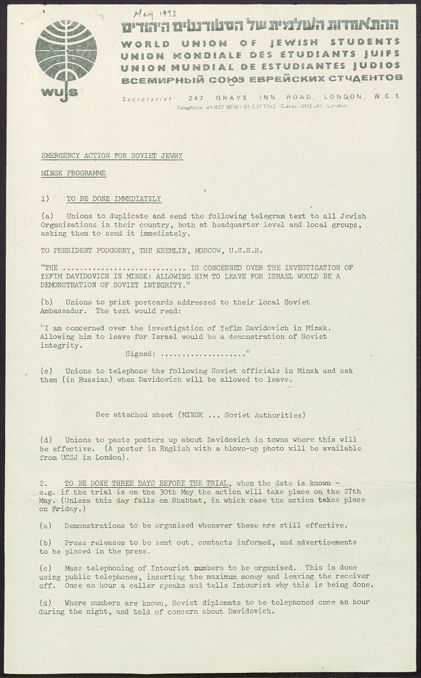 Cleveland Council on Soviet Anti-Semitism, Union of Councils for Soviet Jews, Rosenblum, Louis, World Union of Jewish Students