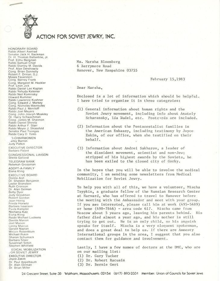 Jews -- Massachusetts -- Boston, Jews, Soviet, Emigration & immigration, Refuseniks, Human rights, Political action