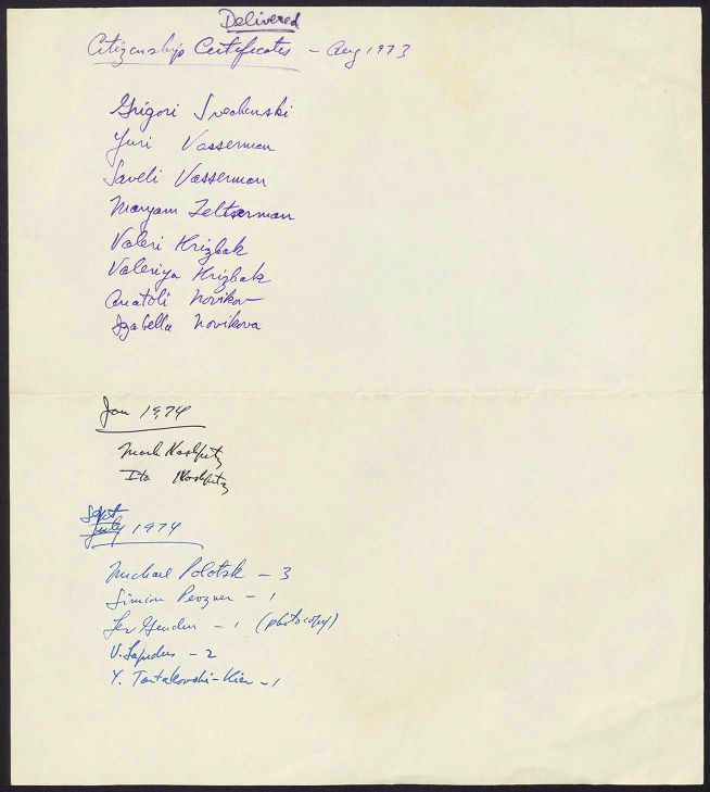 Lists and other material related to Soviet Jews who were trying to emigrate.