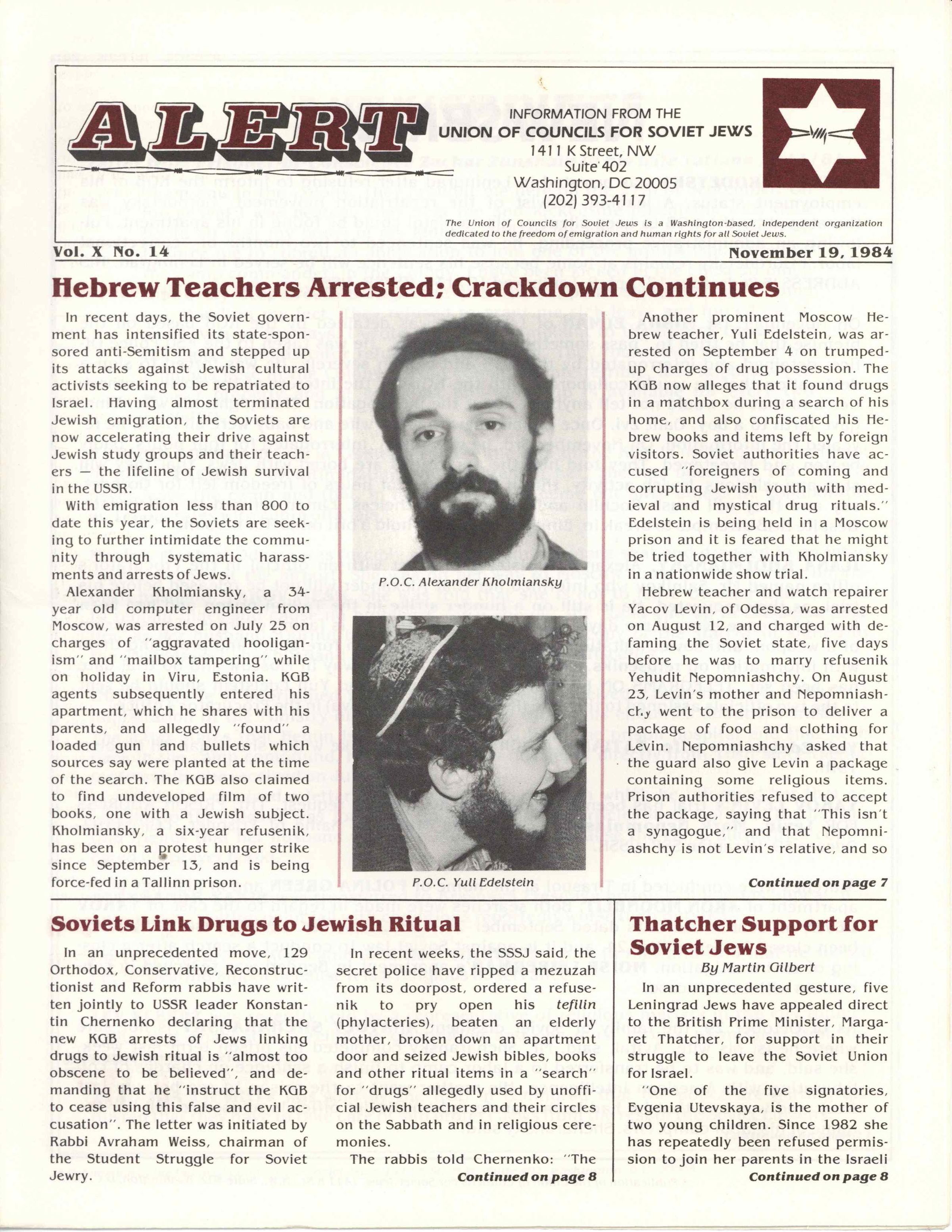 Jews, Soviet, Political prisoners, Emigration & immigration, Kholmiansky, Alexander, Edelshtein, Yuli, 1958-, Levin, Yakov, Antisemitism, Refuseniks, Hunger strikes, Kotlyar, Edith