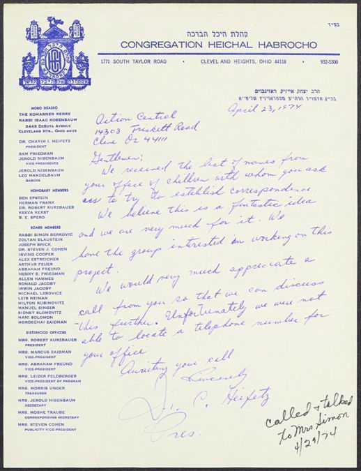Cleveland Council on Soviet Anti-Semitism, Union of Councils for Soviet Jews, Rosenblum, Louis, Jewish Community Federation (Cleveland, Ohio), Bureau of Jewish Education, Mandel, Morris, 1911-2009, Jewish Community Center of Cleveland, Jewish War Veterans of the United States, Inc., Zucker, Henry L., 1910-, Lindsay, John V. (John Vliet), Margolis, Henry, Rosenthal, Edward, Silberman, Jerome, Kelley, Henry E.