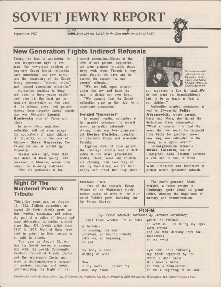 Refuseniks, Jews, Soviet, Emigration & immigration, Antisemitism, Political prisoners, Glasnost, Poetry, Night of the Murdered Poets