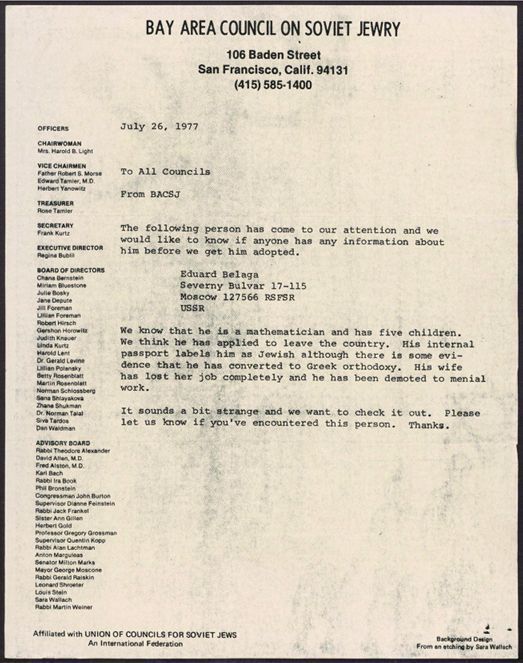 Cleveland Council on Soviet Anti-Semitism, Union of Councils for Soviet Jews, Rosenblum, Louis, Bay Area Council on Soviet Jewry, Light, Harold B., Gould, Laurel, 1931-2008, United States. Trade Act of 1974. Title 4. Section 402, Jewish Community Relations Council for Alameda and Contra Costa Counties