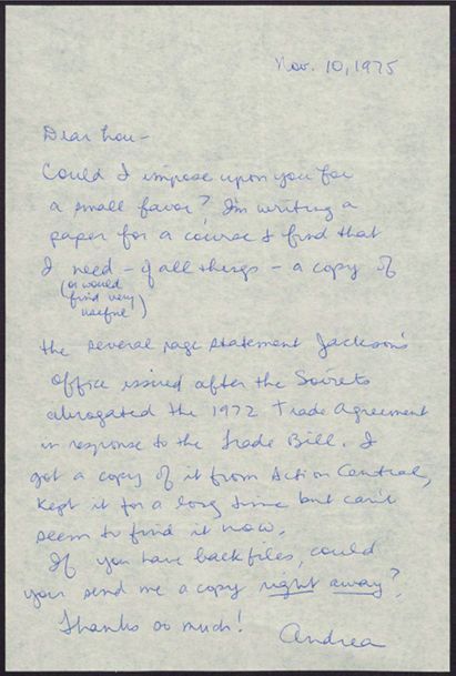 Correspondence with Andrea Wine.