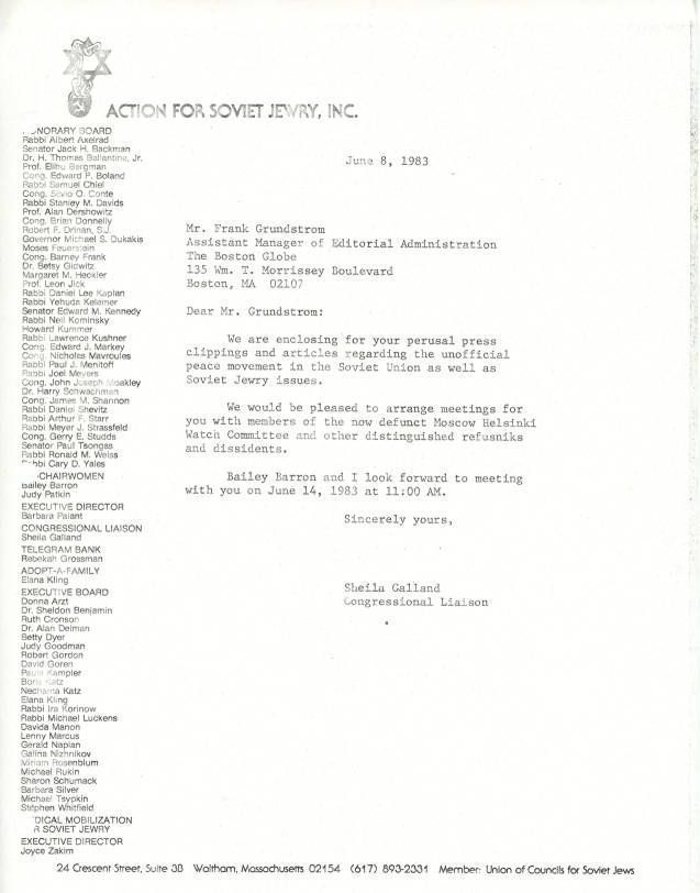 Union of Councils for Soviet Jews, Moscow Helsinki Monitory Group, Grundstrom, Frank