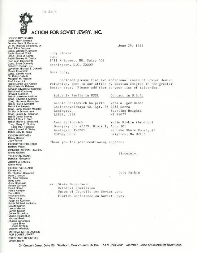 Letter with information on new refusenik cases.