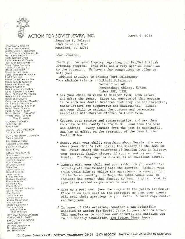 Correspondence - Soviet Jewry to Jonathan S. Peltzer