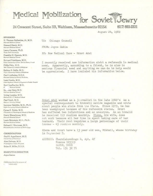 Union of Councils for Soviet Jews, Medical Mobilization for Soviet Jewry, Chicago Action for Soviet Jewry, Adel, Ernst