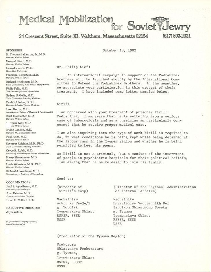 Union of Councils for Soviet Jews, Podrabinek, Aleksandr, 1953-, Medical Mobilization for Soviet Jewry