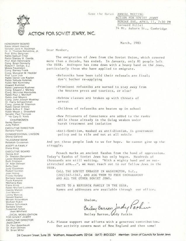 Correspondence - Bailey Barron & Judy Patkin to Member of Soviet Jewry