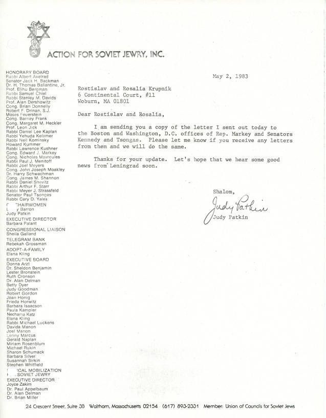 Correspondence - Judy Patkin to Rostislac & Rosalia Krupnik