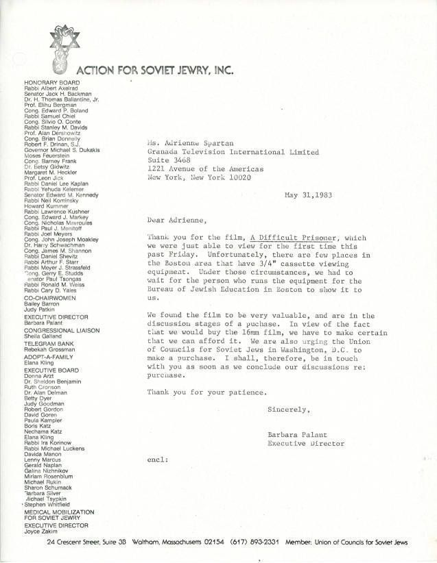 Jews -- Massachusetts -- Boston, Jews, Soviet, Emigration & immigration, Refuseniks, Antisemitism, Political prisoners, Films