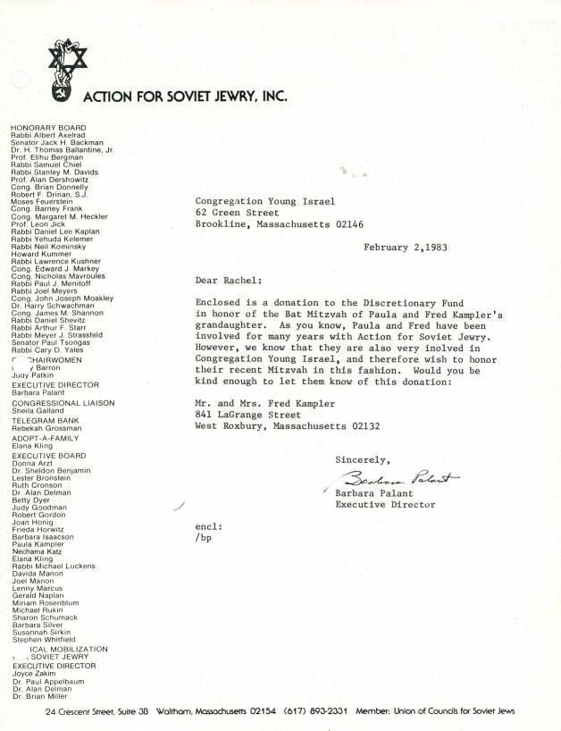 Jews -- Massachusetts -- Boston, Jews, Soviet, Emigration & immigration, Refuseniks, Bat Mitzvah, Donations