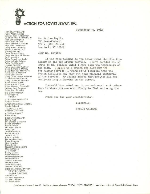 Letter about a film from Moscow on a Yom Kippur service.