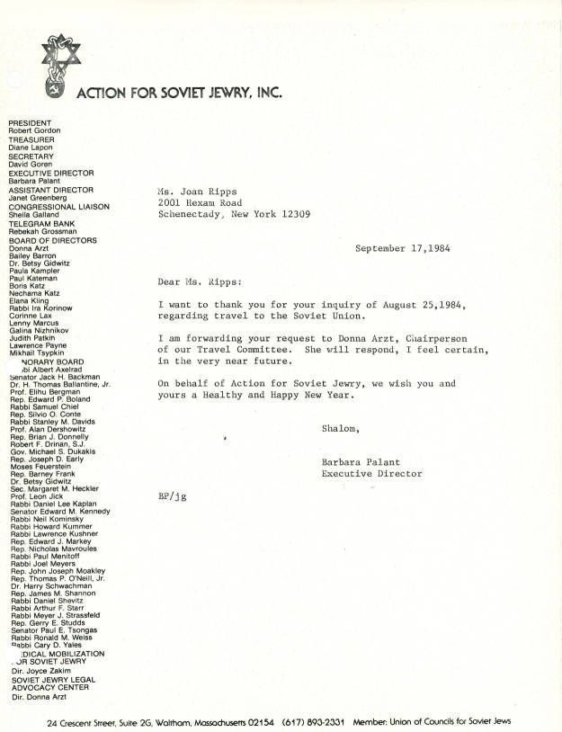 Letter responding to a request for information on travel to the Soviet Union.Collection