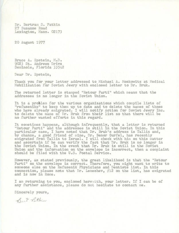 Correspondence - Bertram S. Patkin to Bruce A. Epstein