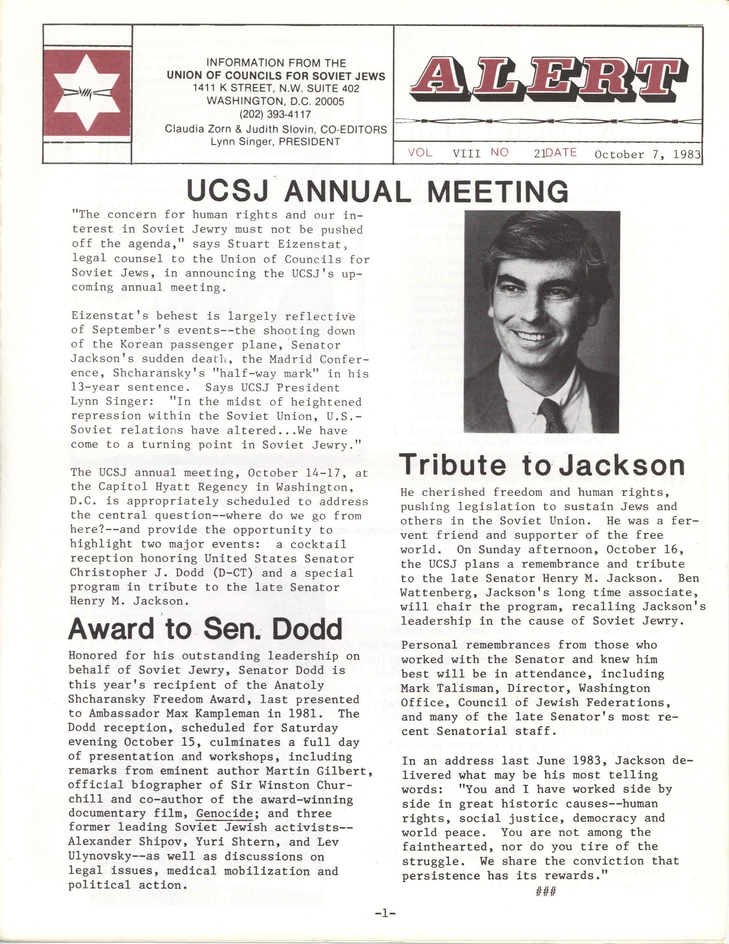 Newsletter published by the Union of Councils for Soviet Jews
