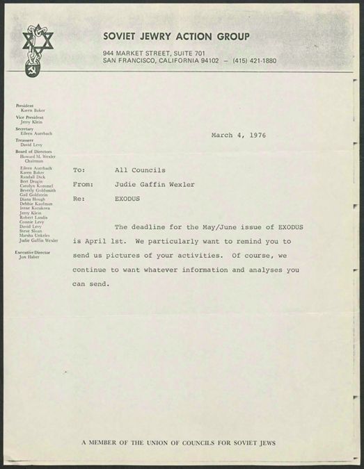 Cleveland Council on Soviet Anti-Semitism, Union of Councils for Soviet Jews, Soviet Jewry Action Group (San Francisco, Calif.), Rosenblum, Louis, California Students for Soviet Jews, Yaroslavsky, Zev, 1948-
