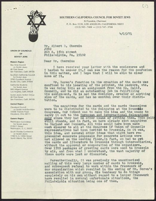 Material pertaining to the organization Southern California Council for Soviet Jews.