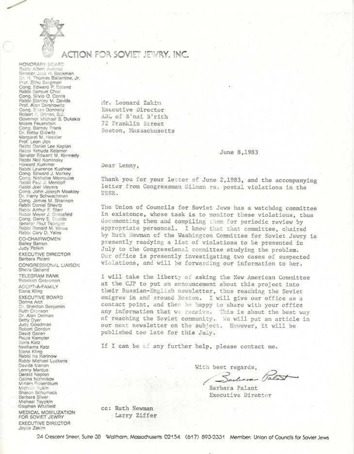 Jews -- Massachusetts -- Boston, Refuseniks, Antisemitism, Emigration & immigration, Jews, Soviet, Postal conventions