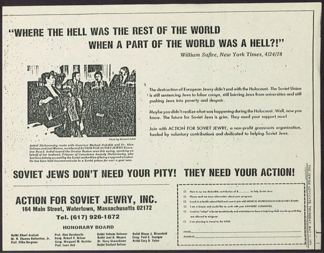 Cleveland Council on Soviet Anti-Semitism, Union of Councils for Soviet Jews, Rosenblum, Louis, Action for Soviet Jewry, Medical Mobilization for Soviet Jewry, New England Student Struggle for Soviet Jewry, Schapira, Morey, Naplan, Gerald L., Macdonald, Torbert H. (Torbert Hart), 1917-1976, Appelbaum, Paul S.
