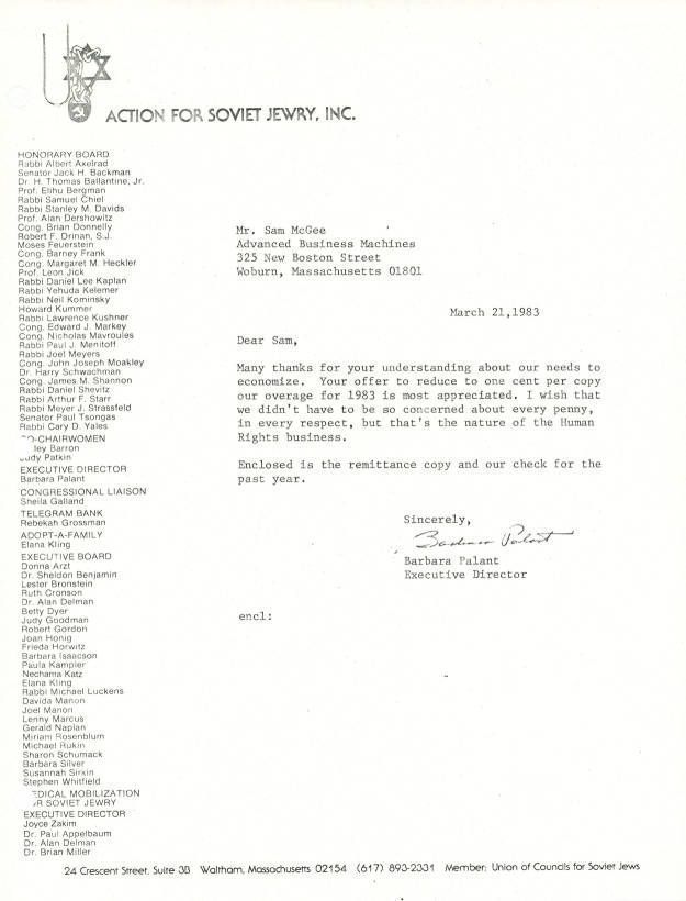 Correspondence - Barbara Palant to Sam McGee
