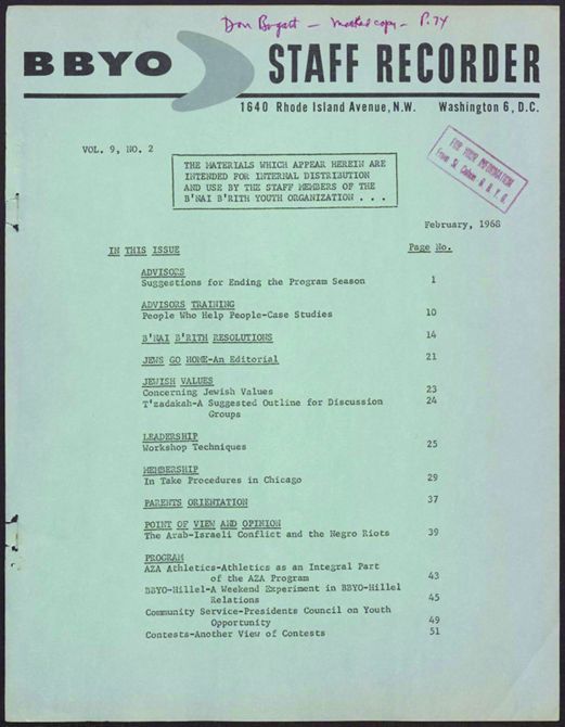 Cleveland Council on Soviet Anti-Semitism, Union of Councils for Soviet Jews, Rosenblum, Louis, B'nai B'rith International, B'nai B'rith Youth Organization