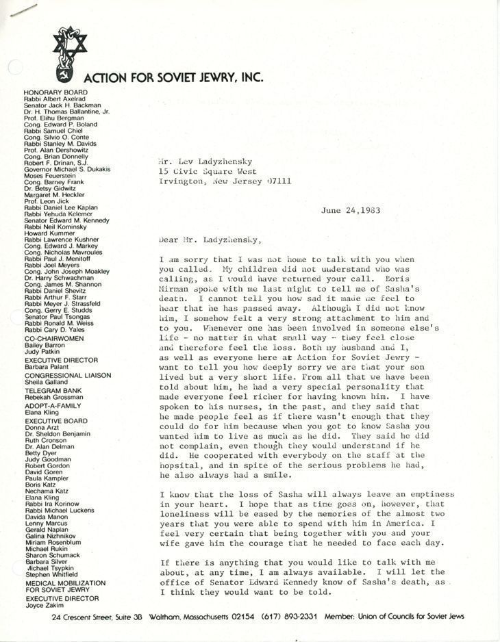 Correspondence - Barbara Palant to Lev Ladyzhensky
